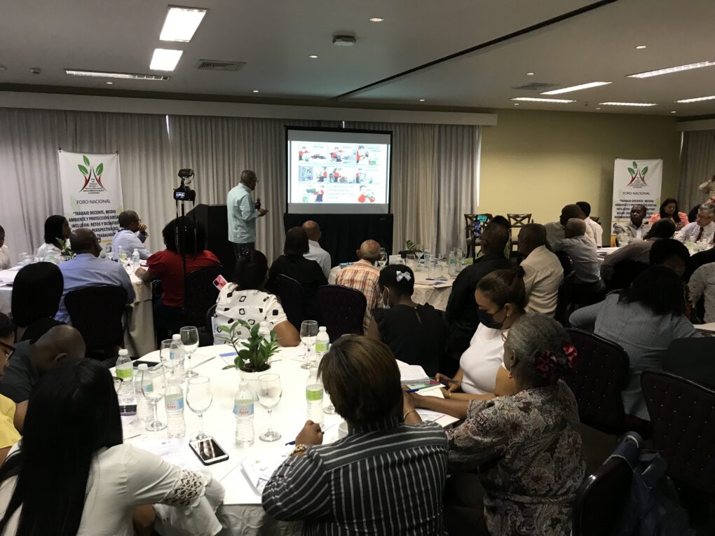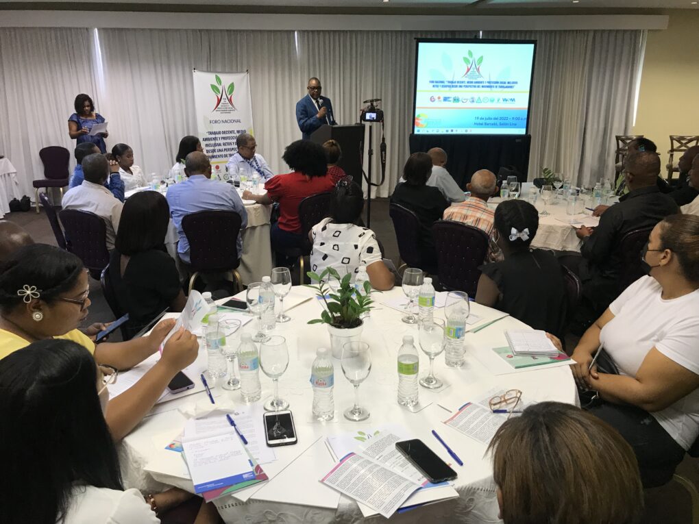 Santo Domingo.- La Confederación Sindical de trabajadores de las Américas (CSA) y sus filiales nacionales, en coordinación con la Red Nacional de Protección Social – INSP!R República Dominicana, realizaron el “Foro Nacional Trabajo Decente, Medio Ambiente y Protección Social Inclusiva”, en el marco de la semana del clima de América Latina y el Caribe 2022 con el fin de dar a conocer la perspectiva del movimiento de los trabajadores en materia de medio ambiente, recursos naturales y cambio climático.
