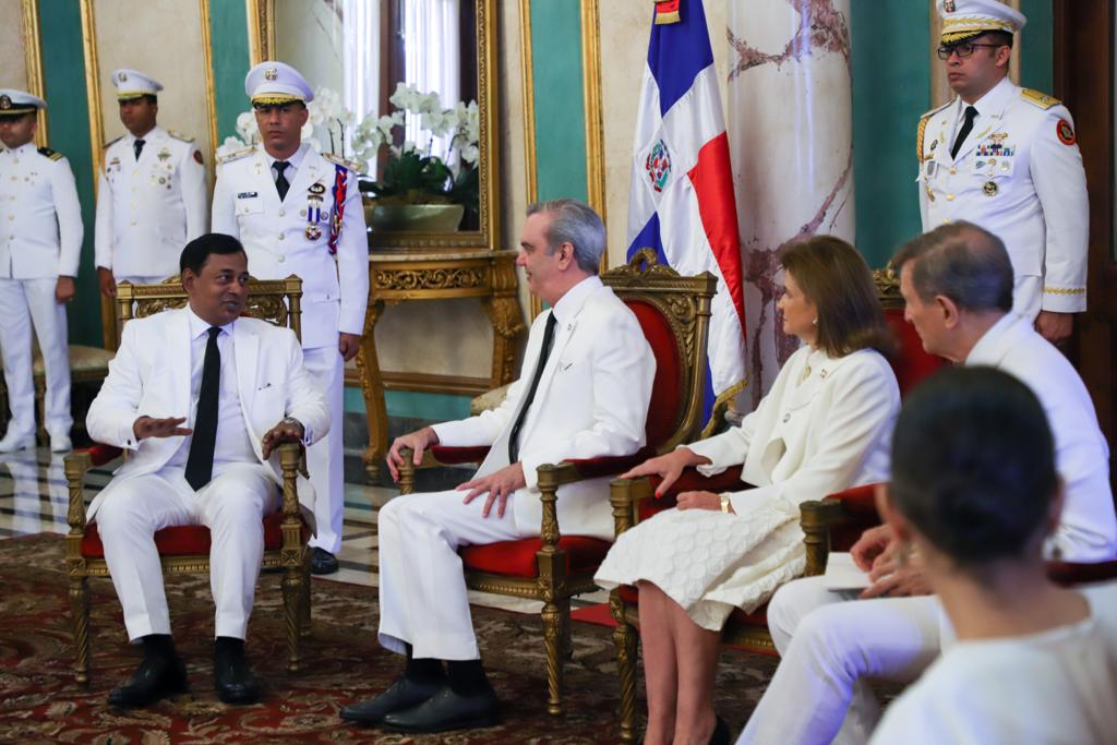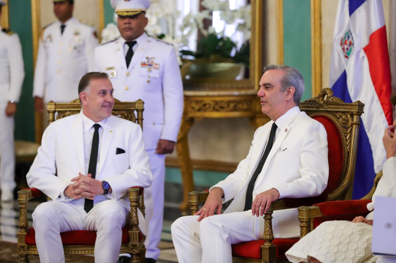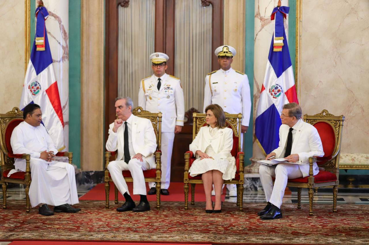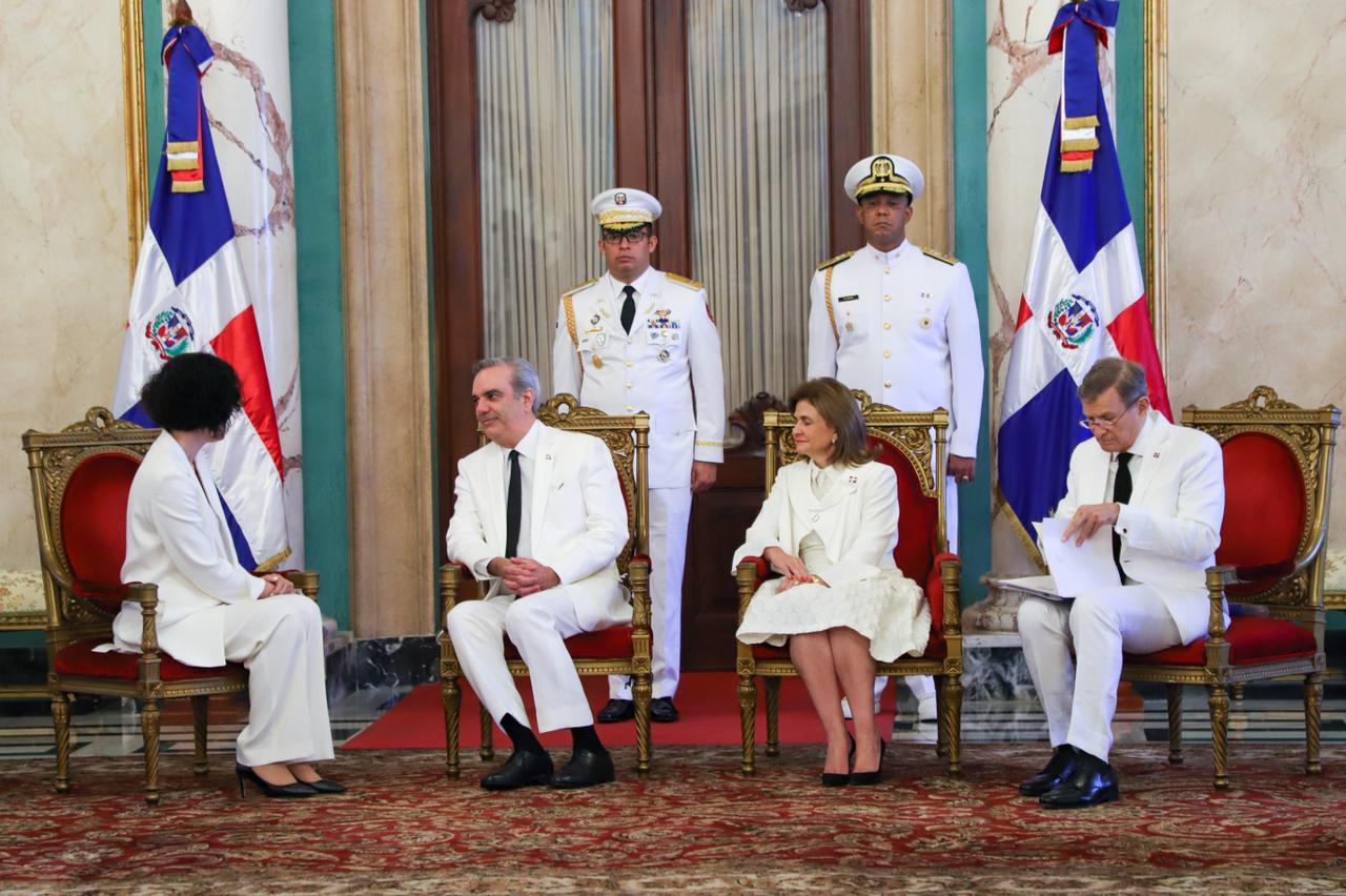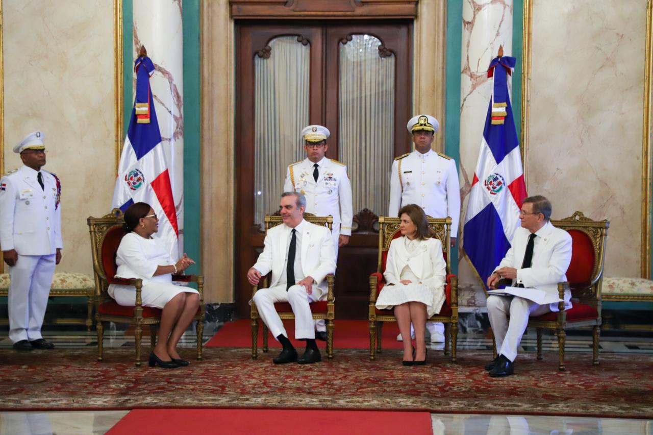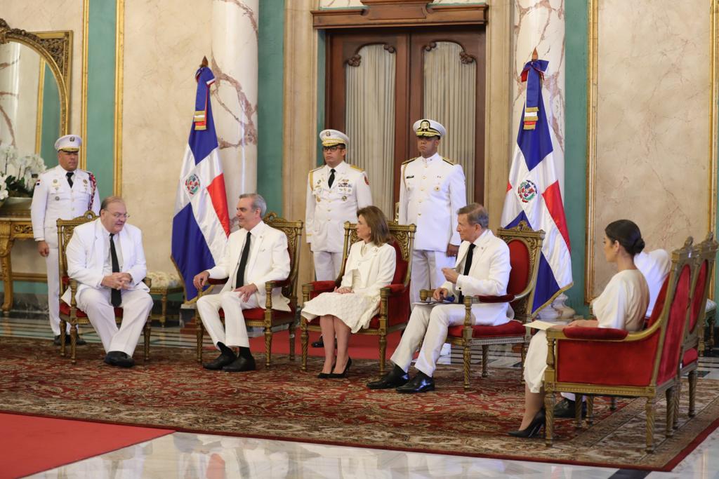 La ceremonia protocolar fue realizada en el Salón de Embajadores del Palacio Nacional, donde el jefe de Estado estuvo acompañado de la vicepresidenta de la República, Raquel Peña, y del ministro de Relaciones Exteriores, Roberto Álvarez.